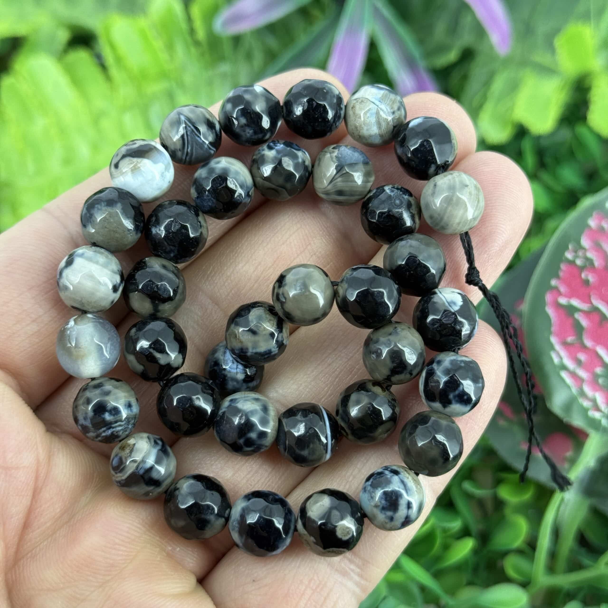 Fasetli Kure Siyah Bej Akik Tasi 10 Mm