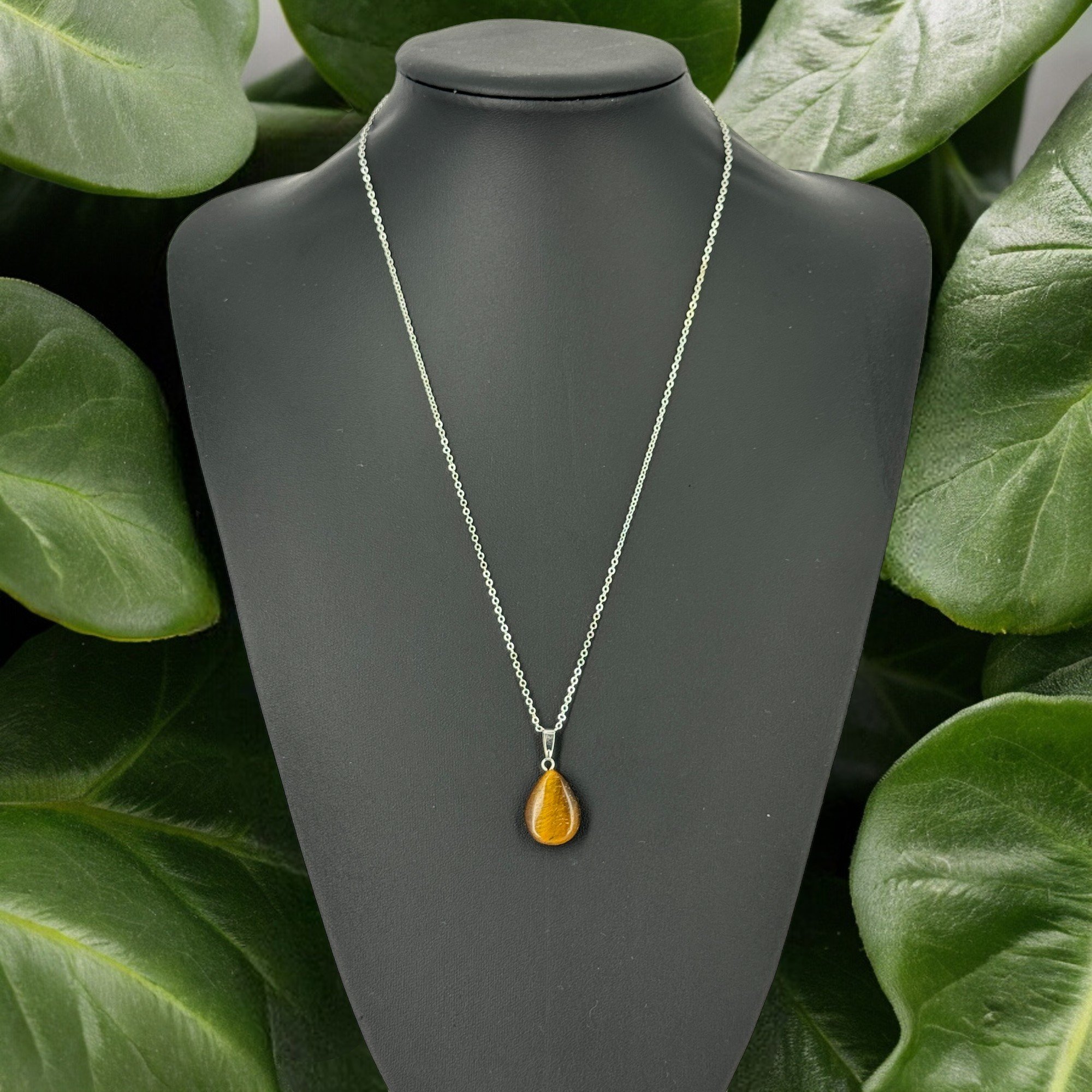 Küçük Yayvan Damla Kaplan Gözü Taşı Kolye