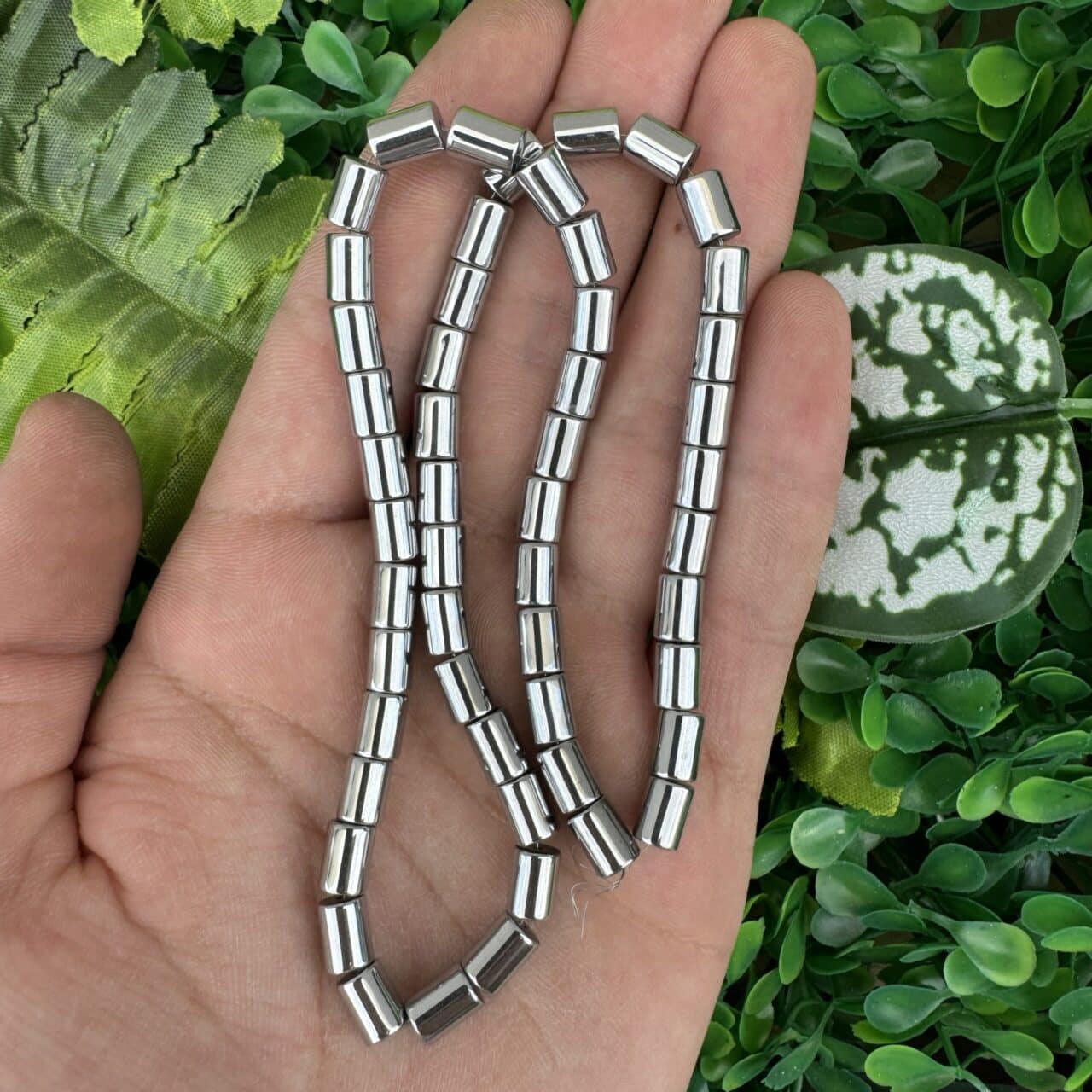 Silindir Gümüş Hematit Taşı 6x8MM
