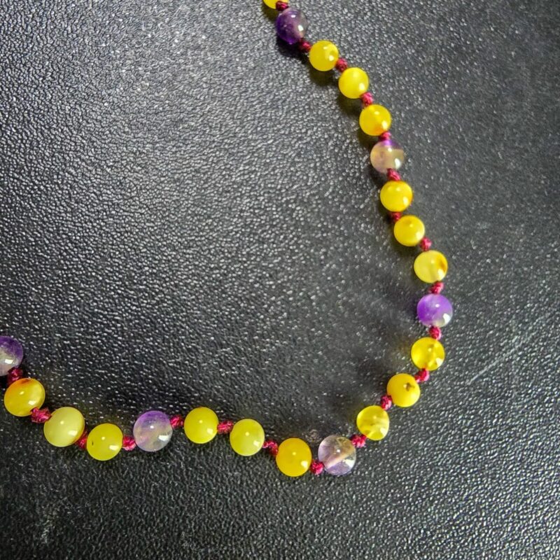 Yetişkin Ametist Taşlı Kehribar Kolye